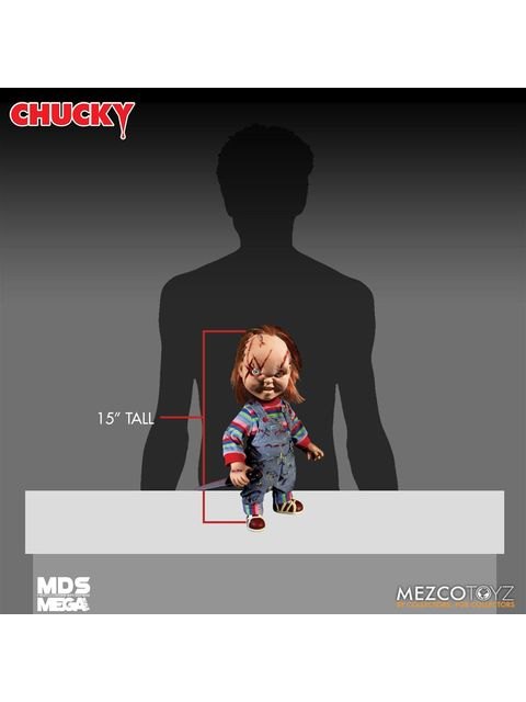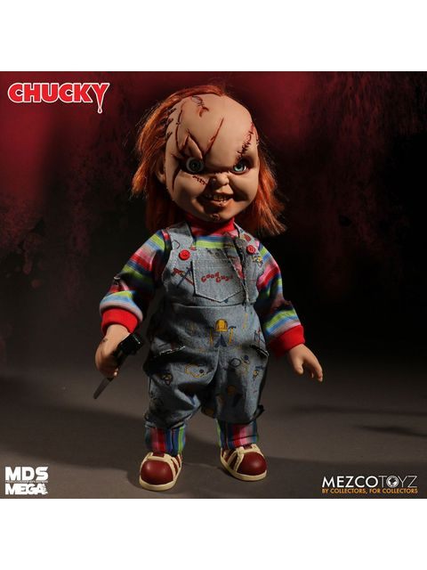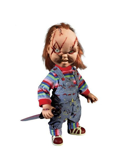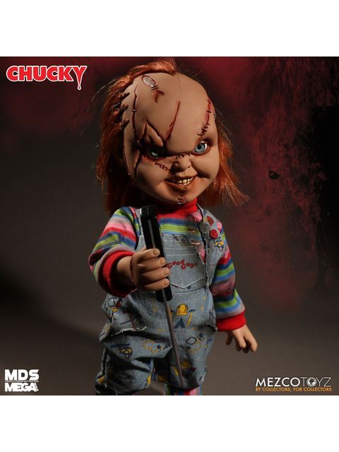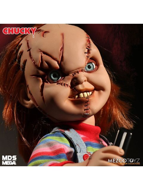 シリーズ第4作『チャッキーの花嫁』を思わせるツギハギだらけの頭部、ガラスのような素材で再現した眼、トレードマークのオレンジ色の植毛、11箇所が可動する全高38センチの大型ボディ、布製コスチュームなど、リアルな質感を味わえる本格派。もちろん劇中で放ったチャッキーらしいセリフ7種(『チャッキーの花嫁』、『チャッキーの種』から引用)をトーキングギミックとして搭載。プラスチック製ナイフも付属し、今にも襲い掛かりそうなチャッキーとしてディスプレイすることも可能です!