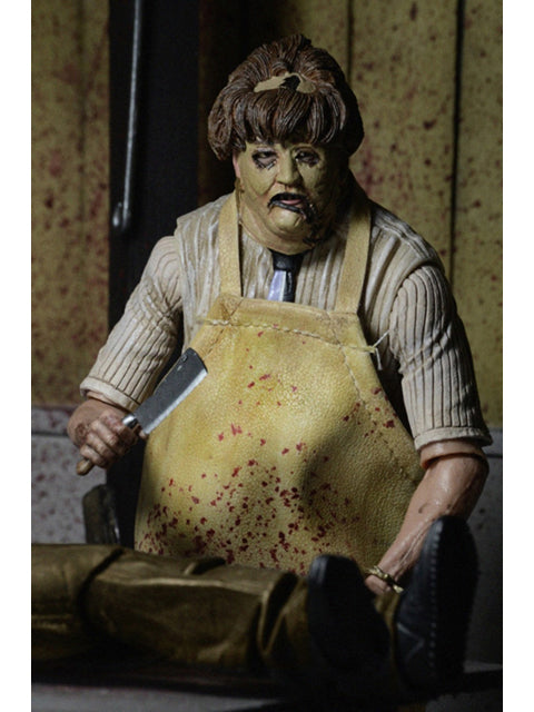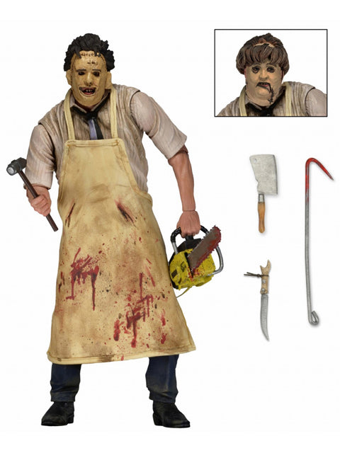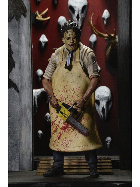 その中で圧倒的存在感を放った殺人鬼「レザーフェイス」がアニバーサリー仕様で7インチフィギュア化です!決定版を目指し「アルティメット」を冠した今回のレザーフェイス、全身25箇所の可動ポイントのボディはネカ入魂の新規造型となりました。しかも可動域に影響しないようにと、装着したエプロンは軟質素材のビニールで再現されるこだわりよう!2パターンの頭部、チェーンソー、ナイフ、マレット、ミートフック、クリーバーと豊富なアクセサリーにも注目です。パッケージは40周年アニバーサリーデザインとなったウィンドウボックス仕様。