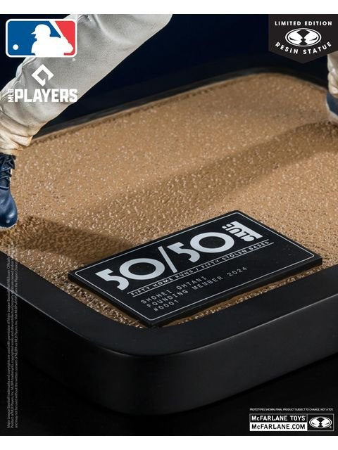 ロサンゼルス・ドジャースの大谷翔平選手を、台座を含む全高約32cmのレジン製スタチューとして立体化!特徴を捉えたヘッドやバッティングフォーム、細かな皺や汚れまで表現したユニフォームなど、造形や質感にこだわり、細部に至るまで精巧に再現。台座には、大谷選手の50-50(1シーズンで50本塁打と50盗塁)達成を祝した「50-50 CLUB」のプレートがデザインされているぞ。プレートにはシリアルナンバーが入っているので、世界で1体だけの貴重なアイテムとしてコレクションできる。さらに台座の前面には、背番号「17」と「OHTANI」の文字があしらわれており、大谷選手のファンには堪らない特別仕様だ。