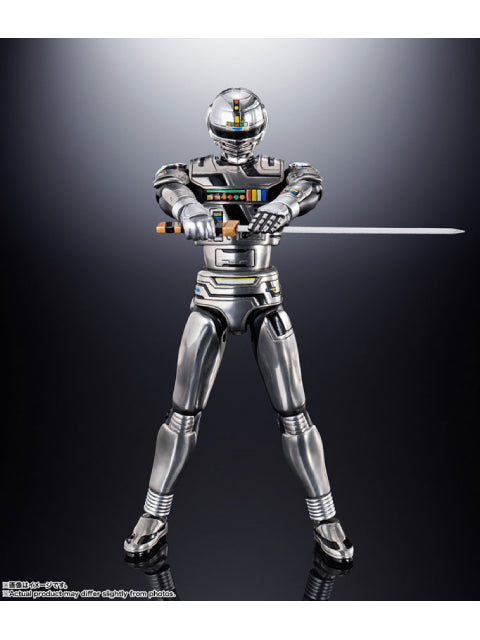 銀色のコンバットスーツを「蒸着!」するヒーロー・ギャバン!その勇姿を蒸着メッキを施した超合金ボディで再現!