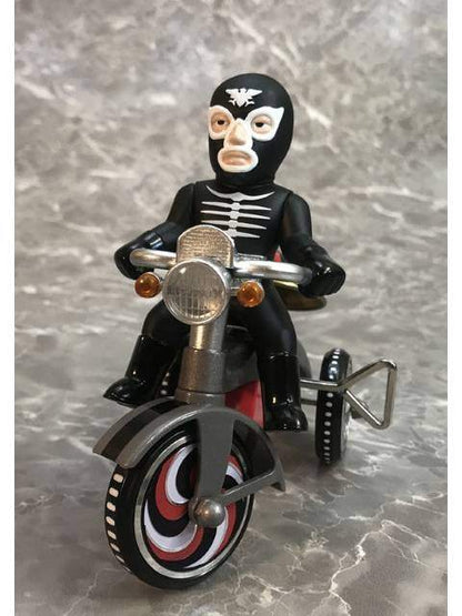 「仮面ライダー」に登場するキャラクターが、懐かしくレトロなゼンマイ式三輪車に乗ったソフビフィギュアで登場!!